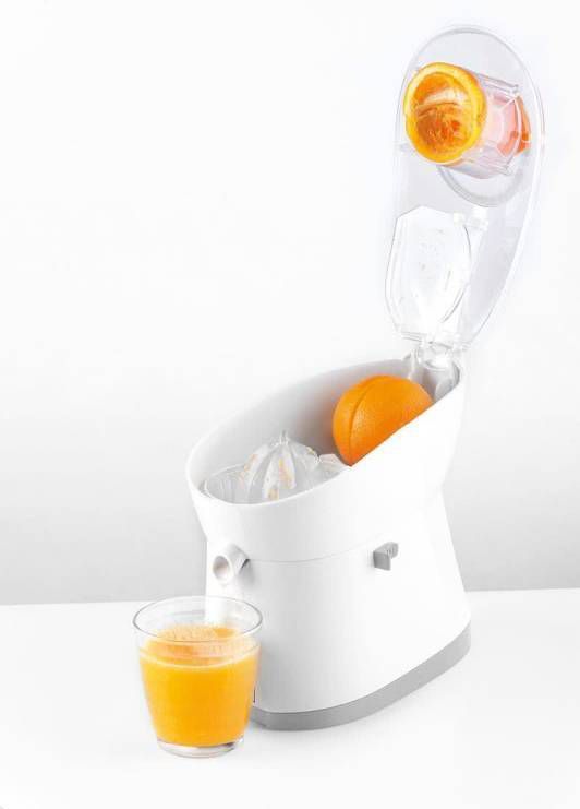 Met de Trebs citruspers snijdt en pers je in enkele seconden heerlijk vers geperst vruchtensap. Door de deksel heb je geen last meer van vieze handen en gespat. Tevens is de citruspers voorzien van een vruchtvleesselector.